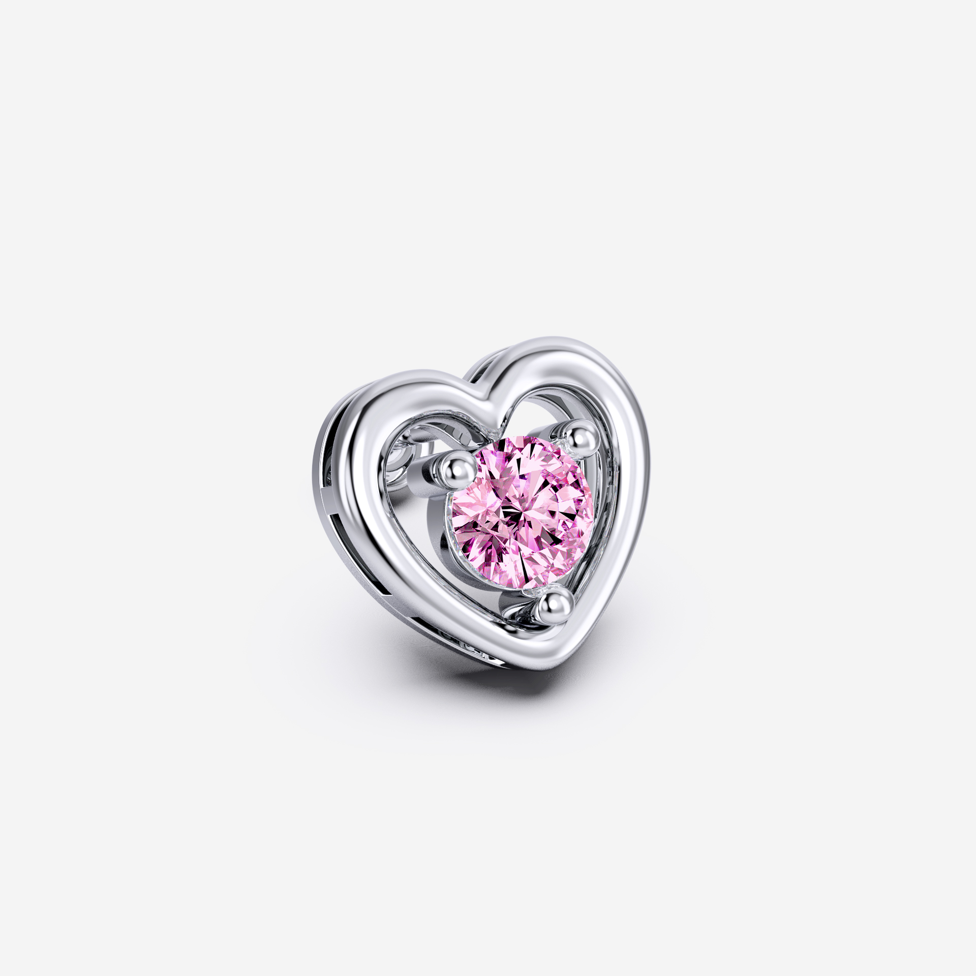 Simple and sweet, this delicate piece features a three-prong setting quartz diamond embraced by a sweet heart shape pattern.