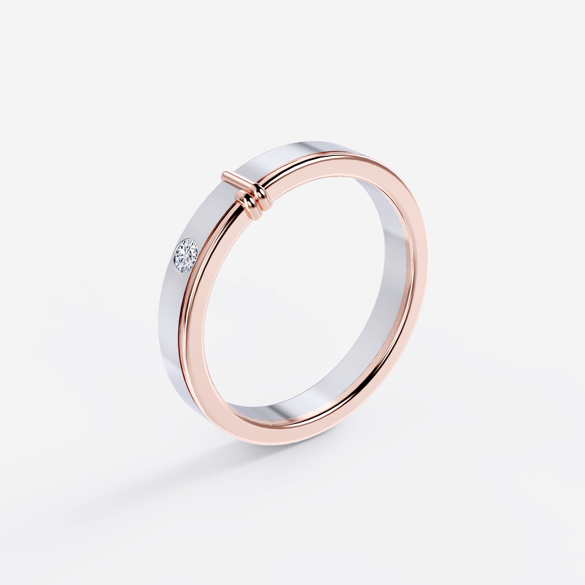 A beautiful symbolization of love, unity, and commitment, this matching wedding band draws inspiration from the “Tie The Knot” ceremony among Celtic wedding traditions. Highlighting two-tone design in a sterling silver band with rose-gold details around the ring edge and adorned by a dainty quartz diamond. This affectionate piece is gracefully set with a delicate strand, expressing two hearts coming together and the love bonds sealed for eternity.